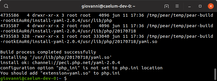 Quando utilizei o comando para instalar, a última linha mencionou que eu deveria adicionar “extension=yaml.so” para o arquivo php.ini. O que isso quer dizer?